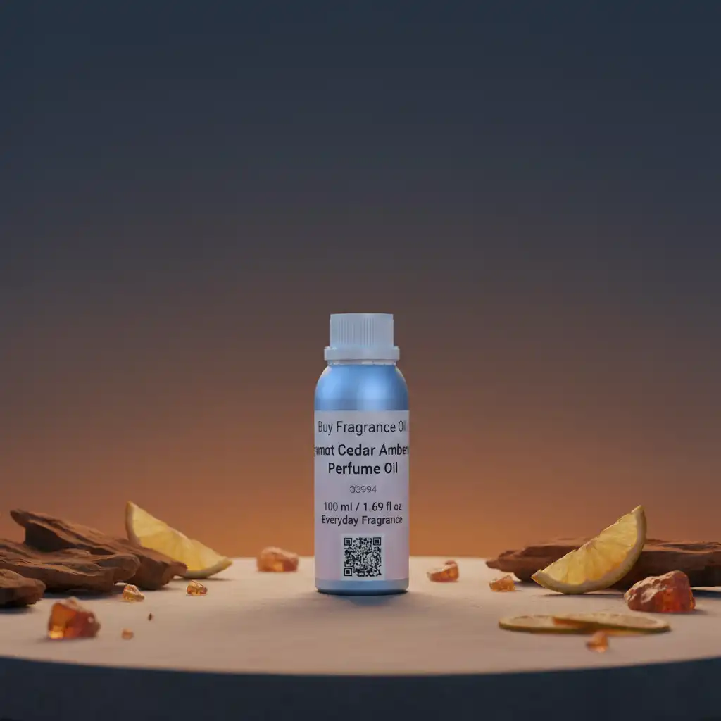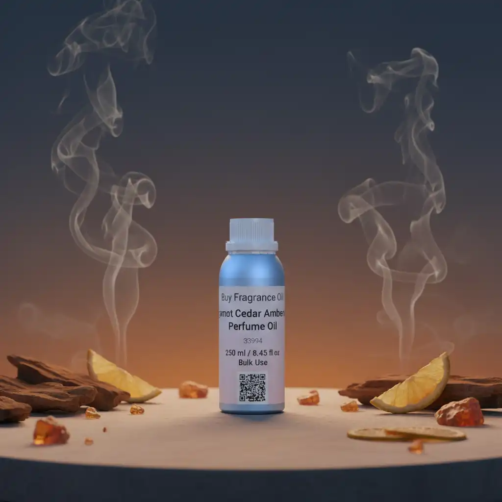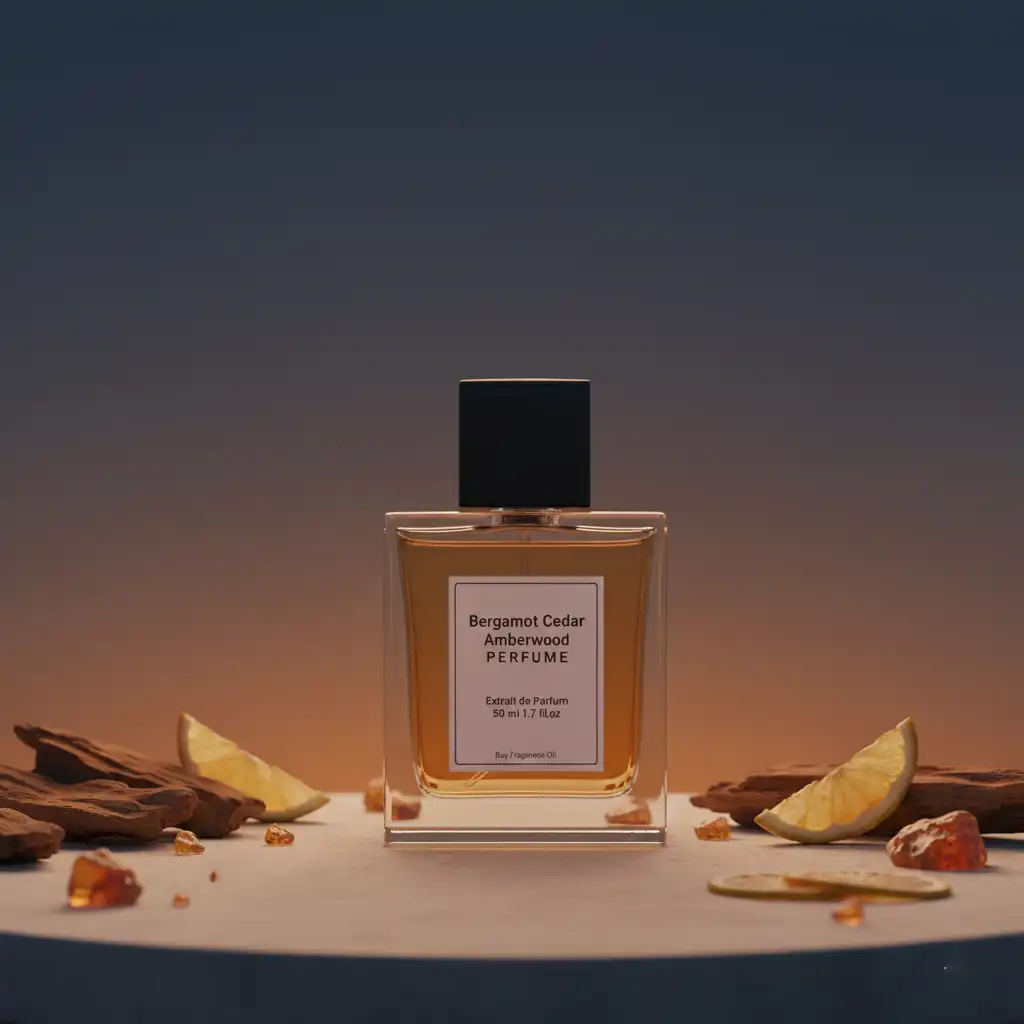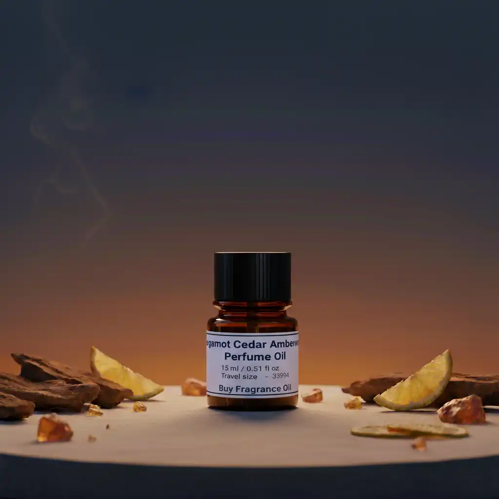 Bergamot Cedar Amberwood Perfume Oil – masculine woody citrus fragrance with amber and cedar, luxury alcohol-free