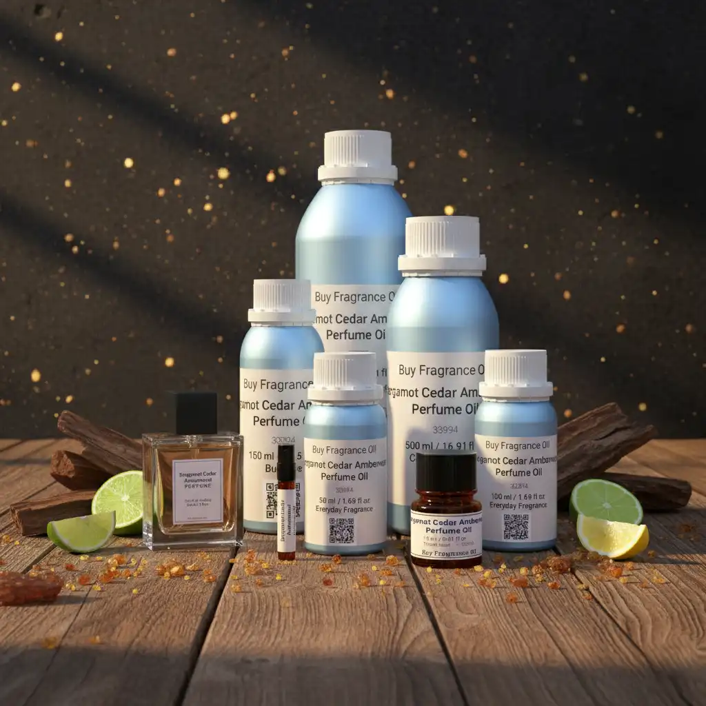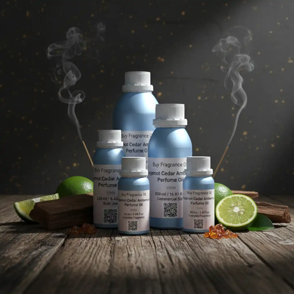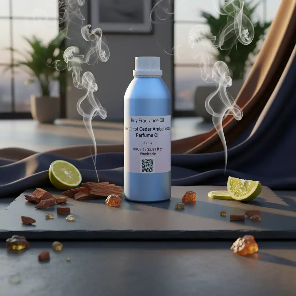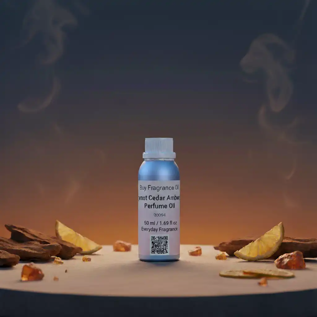 Bergamot Cedar Amberwood Perfume Oil – masculine woody citrus fragrance with amber and cedar, luxury alcohol-free