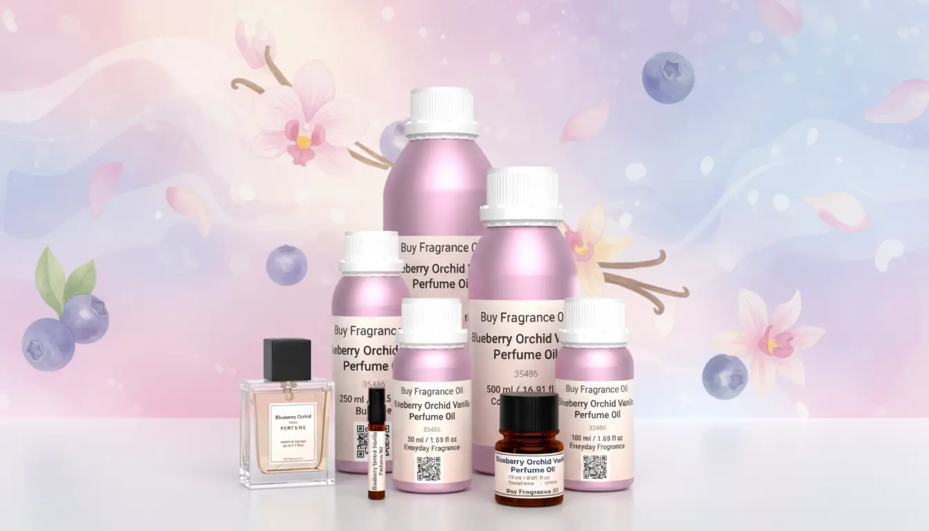 Unlock the dreamy, sweet essence of Blueberry Orchid Vanilla Perfume Oil for every purpose, from personal luxury to commercial fragrance production. This enchanting blend of juicy blueberry, delicate orchid, and creamy vanilla embodies playful femininity and offers an intimate, long-lasting scent trail.