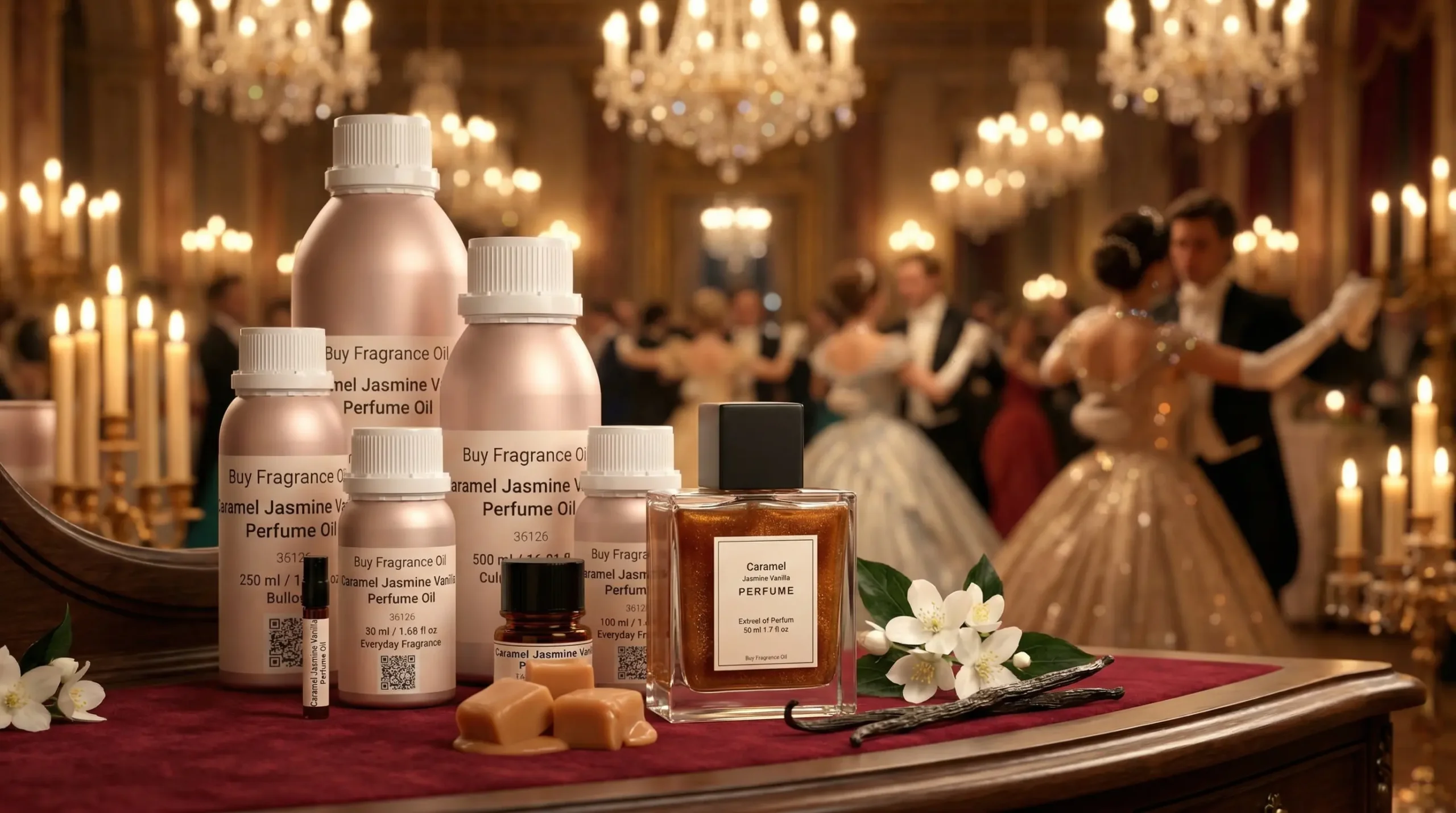 Buy Fragrance Oil’s Caramel Jasmine Vanilla Perfume Oil is an independent artistic interpretation inspired by the scent profile of Xerjoff Gran Ballo. We are not affiliated with, endorsed, or sponsored by Xerjoff or its licensors.