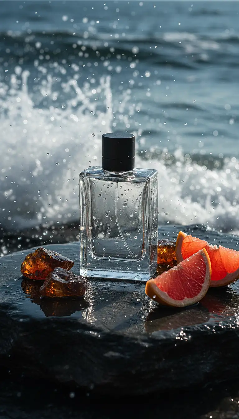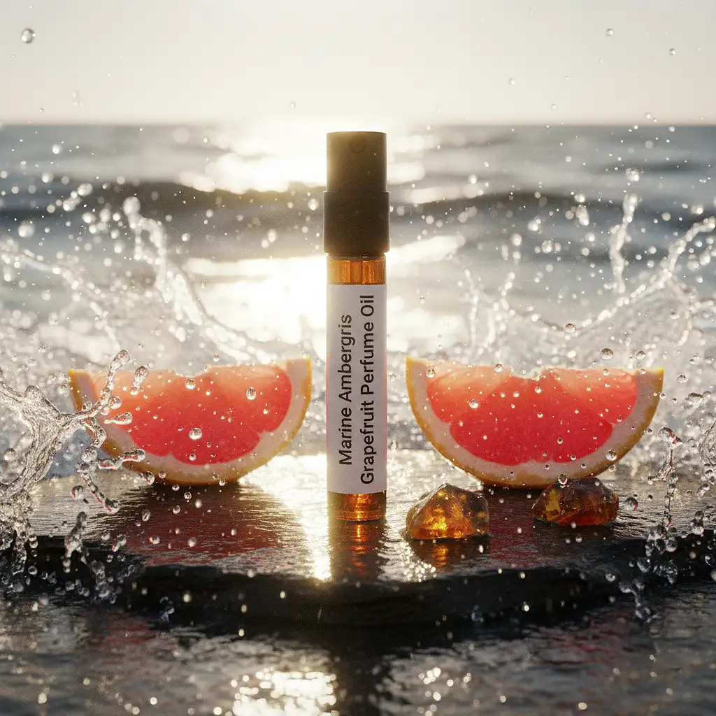 Marine Ambergris Grapefruit Perfume Oil combines ocean freshness with amber depth and citrus brightness. Clean, energetic, and perfectly balanced for modern men.