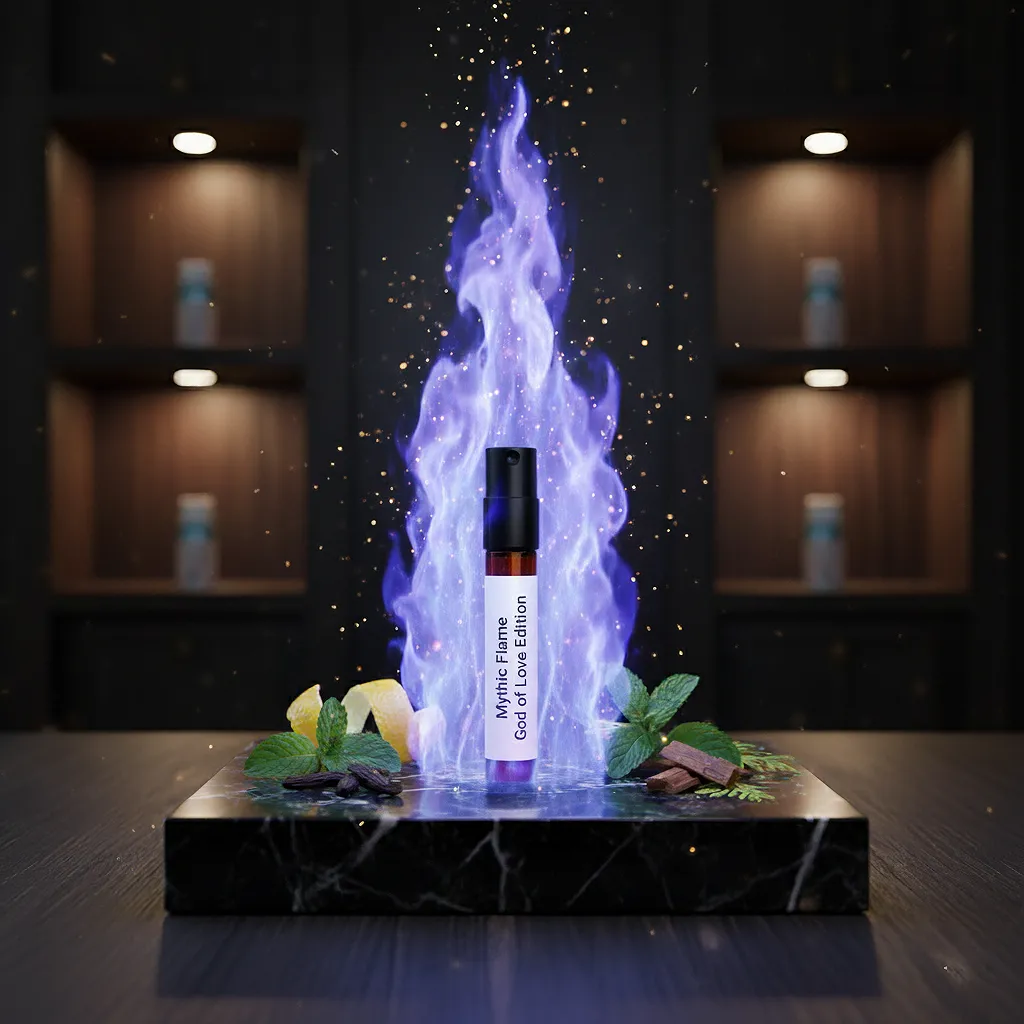 Inspired by Versace Eros Parfum, Mythic Flame – God of Love Edition embodies the fire of passion and strength of desire. Opening with vibrant citrus and cool mint, the fragrance flows into a heart of sweet tonka and ambroxan, finishing with a deep woody-vanilla base. It is the scent of charisma, intensity, and timeless masculinity — a modern interpretation of mythic seduction.