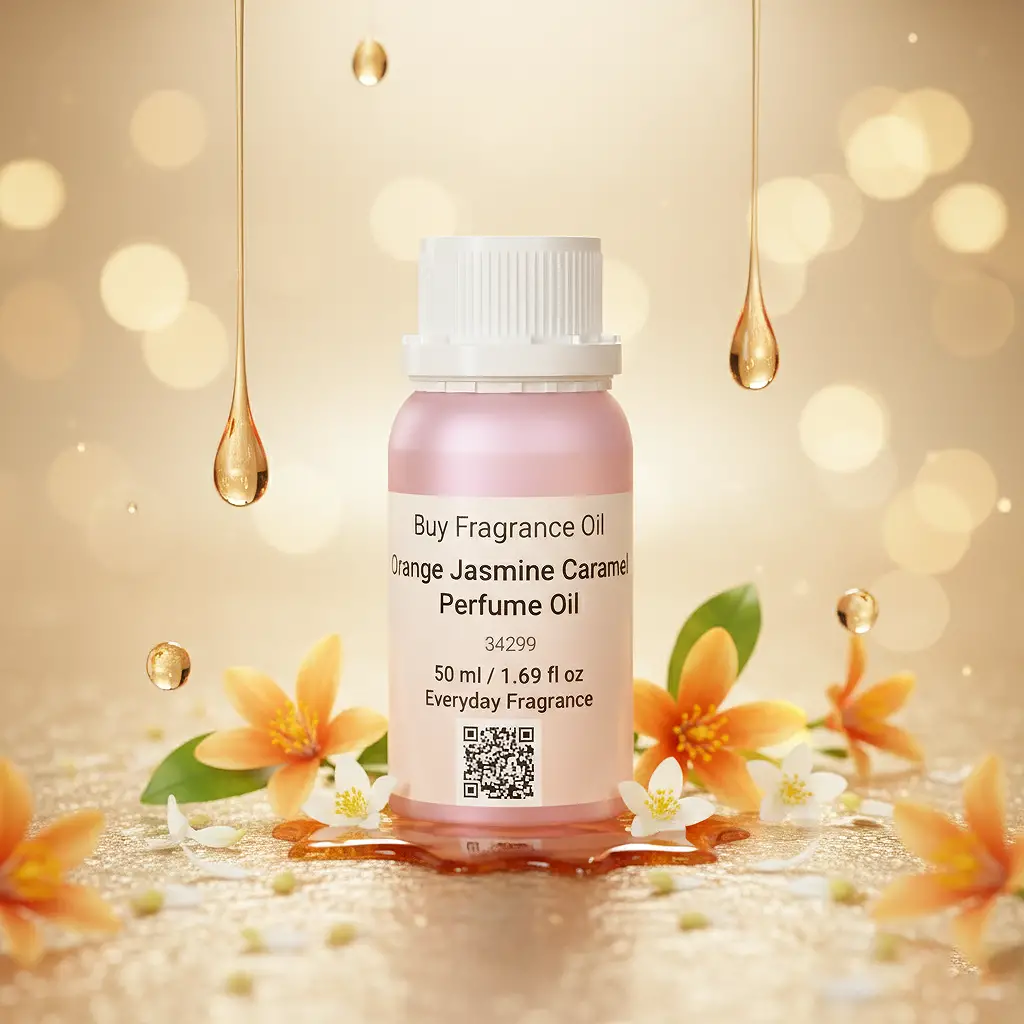 Orange Jasmine Caramel Perfume Oil blends juicy orange, creamy jasmine, and golden caramel for a rich, sweet, and feminine scent that feels playful and luxurious.