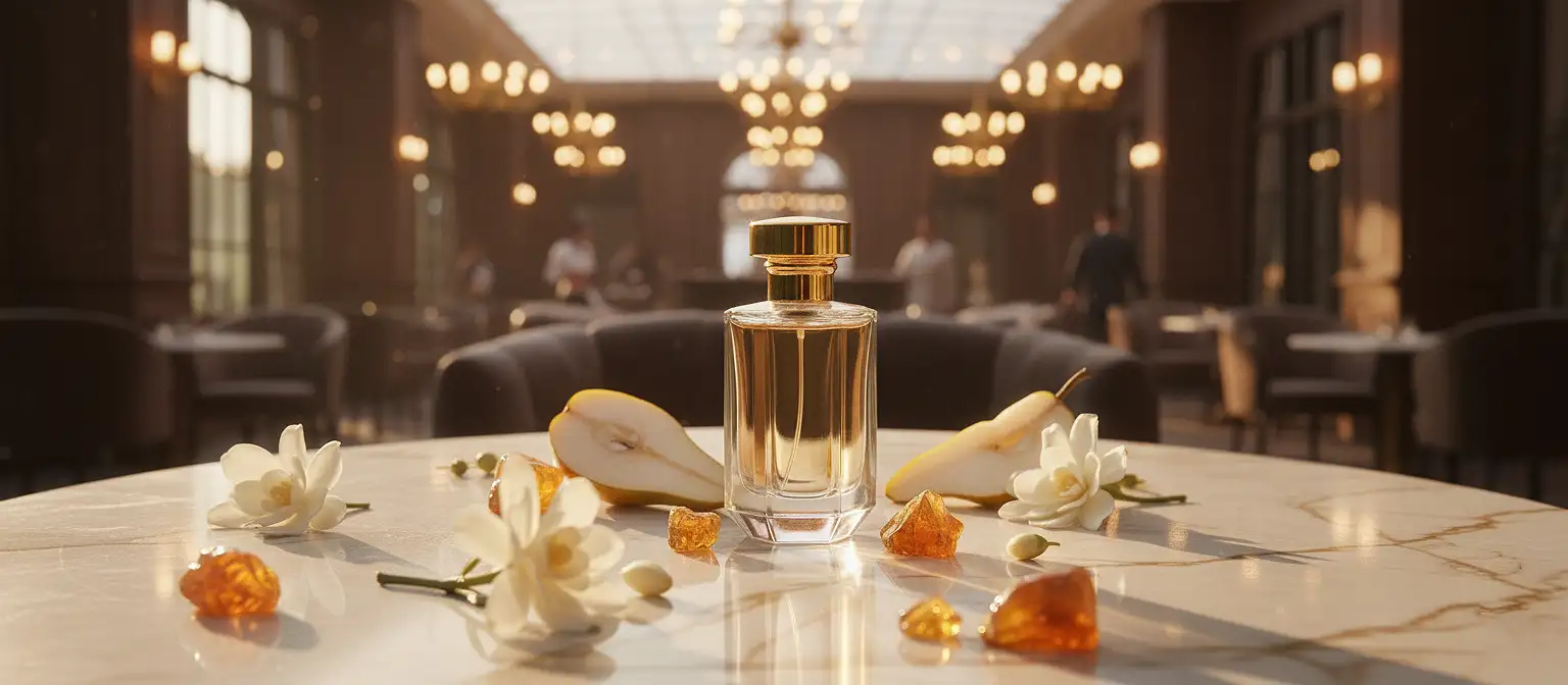 A: Absolutely. The pear–amber balance gives it a sophisticated unisex appeal.