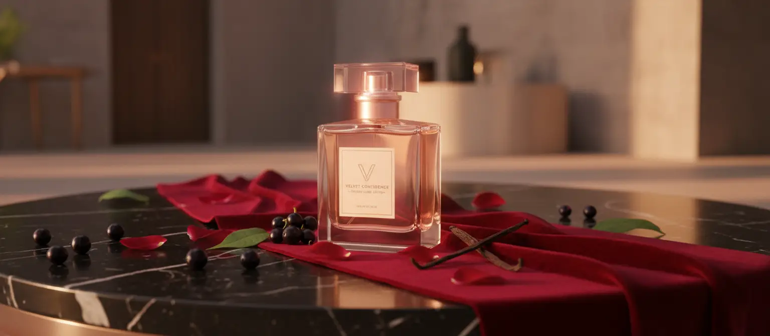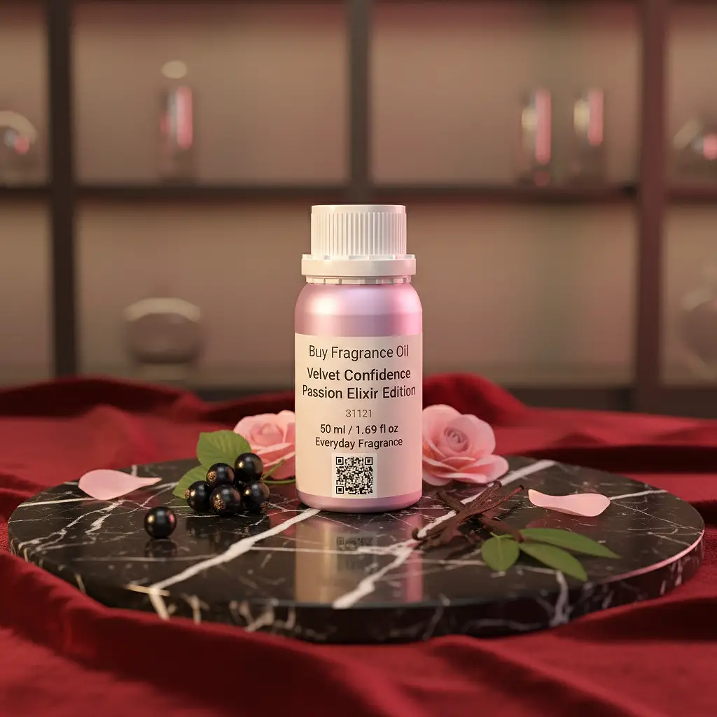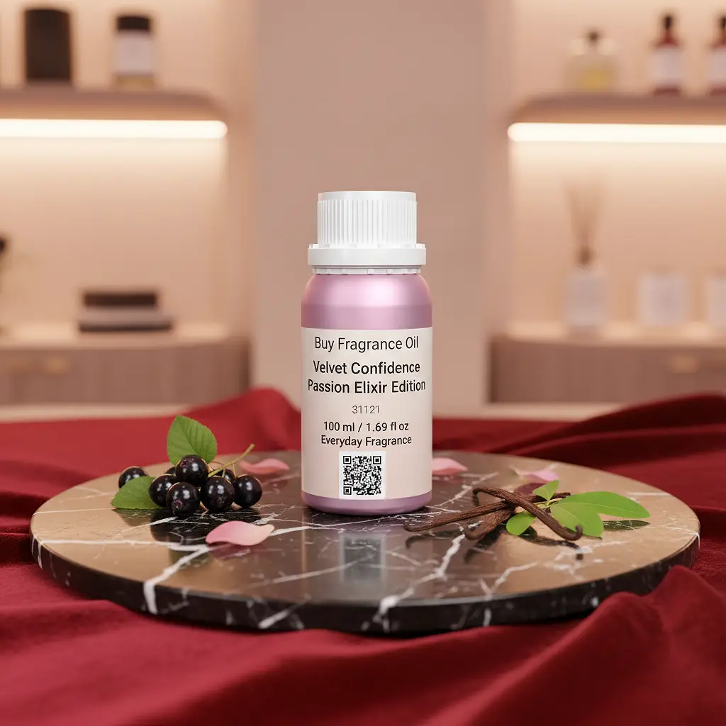 Velvet Confidence perfume oil, Passion Elixir Edition fragrance, women’s sweet chypre perfume oil, Armani Sì inspired perfume oil, luxury feminine fragrance oil, blackcurrant rose vanilla perfume, long lasting women’s fragrance, sustainable luxury perfume design;